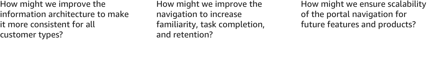 This was a project that led with design thinking and we bootstrapped it from the beginning. Product managers were focused on the needs and features of individual customer types. A wholesale change in IA and navigation were problems that we faced at the company level and no specific person was responsible for fixing it. Despite this, a UX designer and I pushed ahead without much initial support. We started a discovery process with both internal users and customers and continued the design process from there.