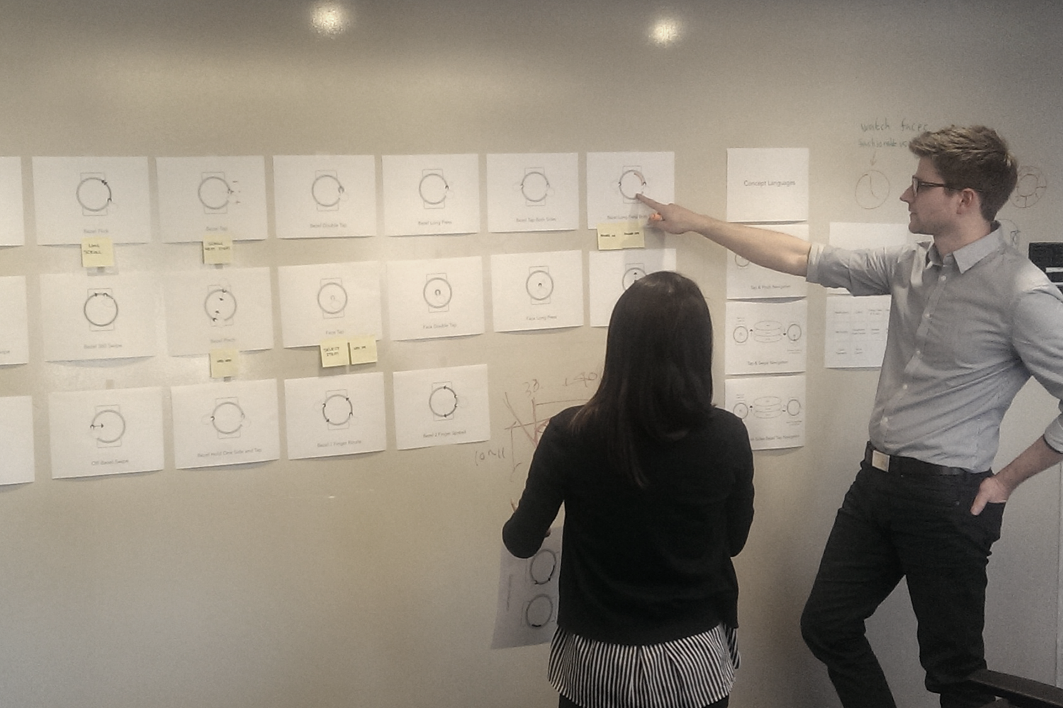 In Palo Alto. we gathered with key stakeholders from our client including the industrial designer responsible for the physical watch design. We presented our research findings, gesture exploration and the basic OS concept. We aligned on our basic conclusions and created a plan for the next phase of the project which included creating a prototype of the watch OS with key screens and a few examples watch apps.