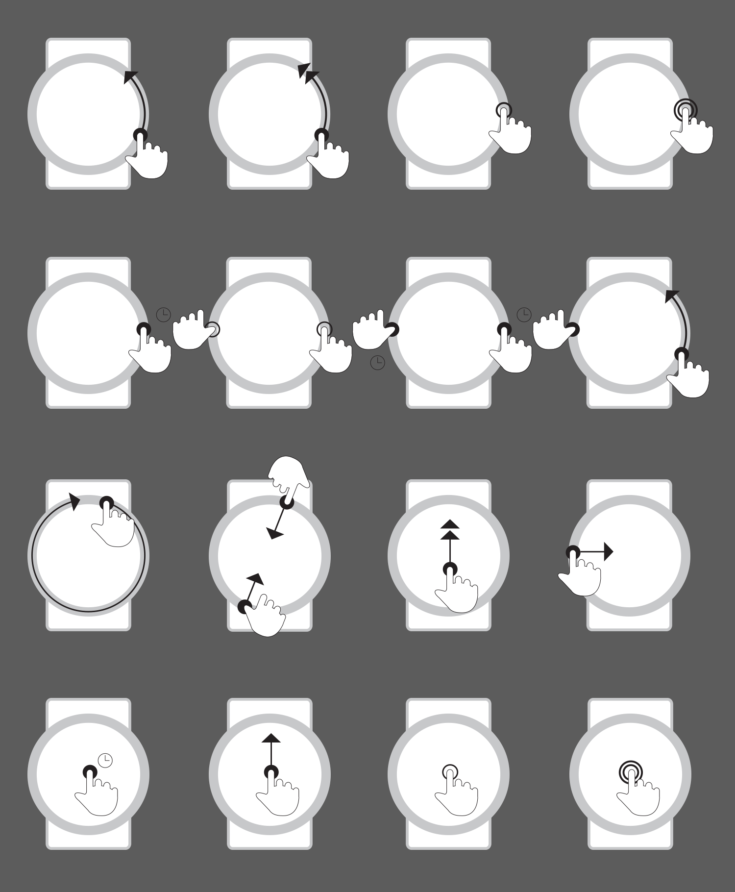 After determining an intuitive set of custom gestures that utilized the touch-sensitive bezel, it was time to create new interaction paradigms that accentuated and supported the round smart watch.